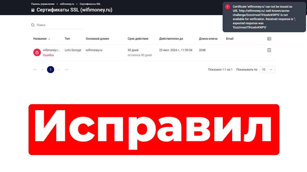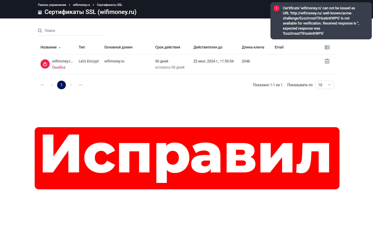 Я уже рассказывал, как установить бесплатную панель управления сайтами FastPanel. Я ее использую уже давно и никогда не было проблем. Но недавно на новом сервере при выпуске SSL сертификата Lets Encrypt в FastPanel возникла такая ошибка «certificate cannot be issued as URL».