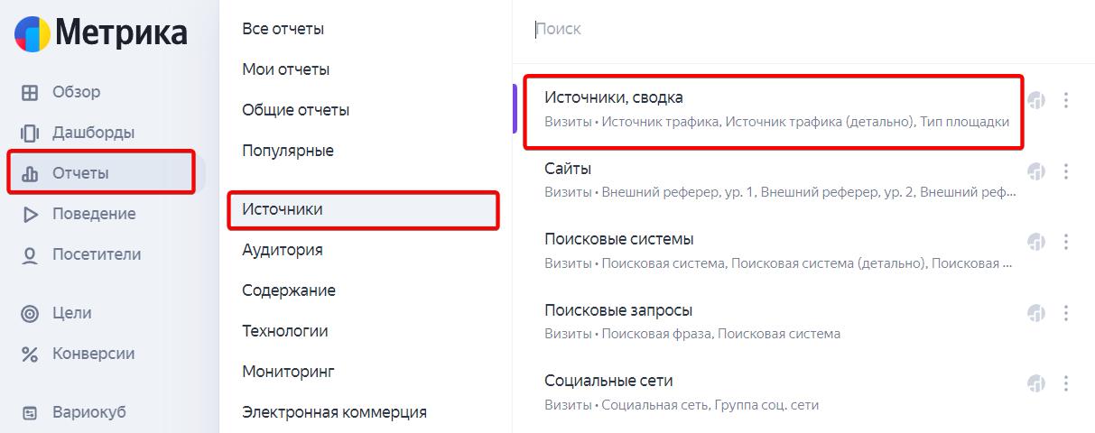 Узнать подробную информацию относительно переходов в Яндекс Метрике вы можете, открыв ее по следующему пути: «Отчеты > Источники > Источники, сводка».
