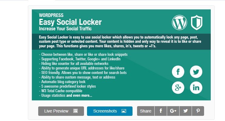 Принцип тот же, что и у многих других плагинов – закрывает посты, целые страницы или фрагменты статей до того момента, пока посетитель не «лайкнет» и не разместит ссылку на контент в соцсети.