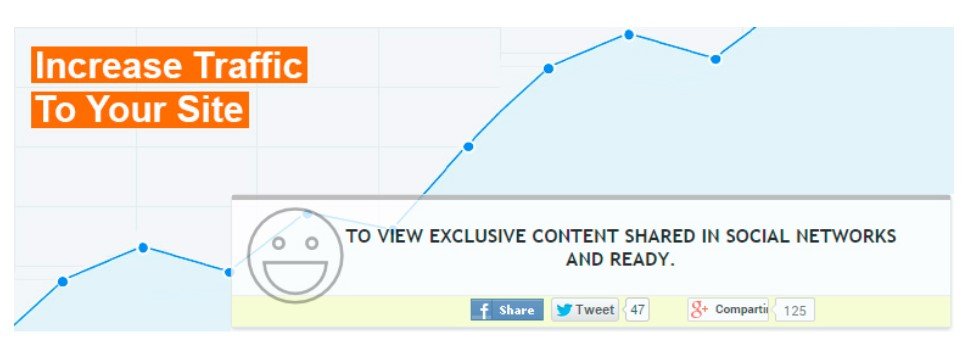 Социальный замок – это инструмент социального продвижения в виде плагина или скрипта, блокирующий доступ к определенному фрагменту контента на странице (тексту, изображению, видео) или всей странице целиком. Пока читатель не кликнет на кнопку социальной сети, поделившись материалом со своими друзьями, либо сообщит свой email, контент ему не будет показываться.