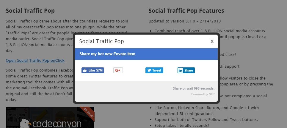 Подобные замки понравятся любому читателю, потому что он предоставляет выбор – просто закрыть всплывающее окно нажатием соответствующей кнопки, или же закрыть его, при этом поделившись ссылкой на статью. Плагин поддерживает Вконтакте и адаптирован к мобильным гаджетам.