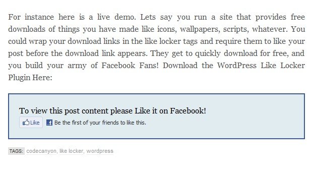 Стоимость на сегодняшний день WordPress Like Locker: $10.