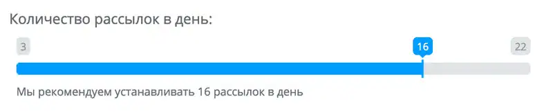 К тому же у нас в системе это можно настроить. Мы рекомендуем вообще ставить 16 рассылок в день.