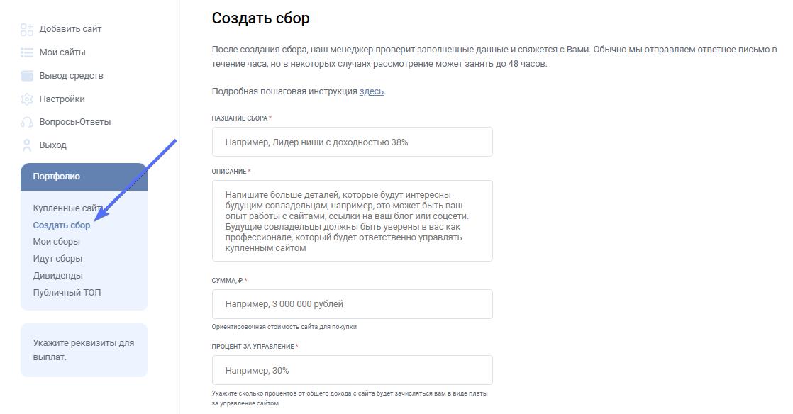 Вебмастера имеют право формировать сборы, предоставляя инвесторам шанс купить долю в интернет-ресурсе. Они устанавливают цену сделки, размер комиссии за управление и показывают сайт.